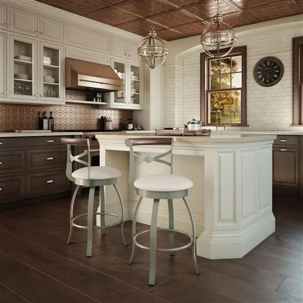 This elegant stool by Amisco® features rounded shapes, strong lines and wooden accents. In a class of its own, the back design will withstand the test of time and outlast fleeting trends! Ideal for kitchen islands. Limited ten-year warranty. Assembly required.