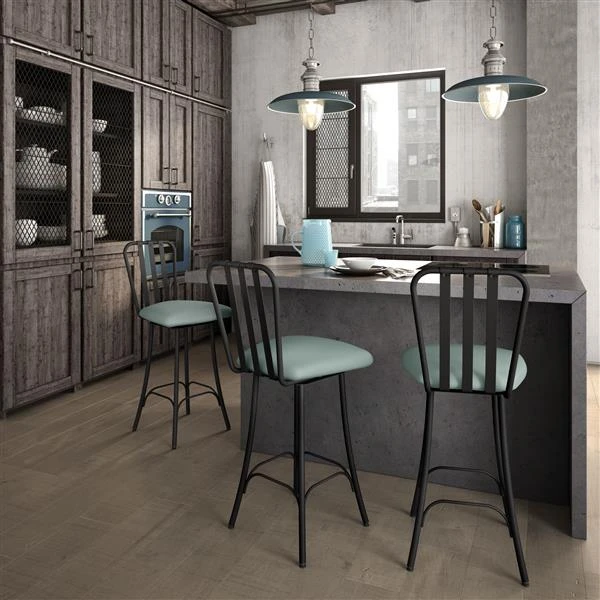 This stool by Amisco® brings the ultimate contemporary/modern look to your kitchen space. This product features distressed materials, clean lines and a minimalist aesthetic. No frills here. Just a harmonious contrast created from clean metal details that play up the warmth of aged wood. You’ll love the base with its open-ended screw and riveted plates. Limited ten-year warranty. Assembly required.