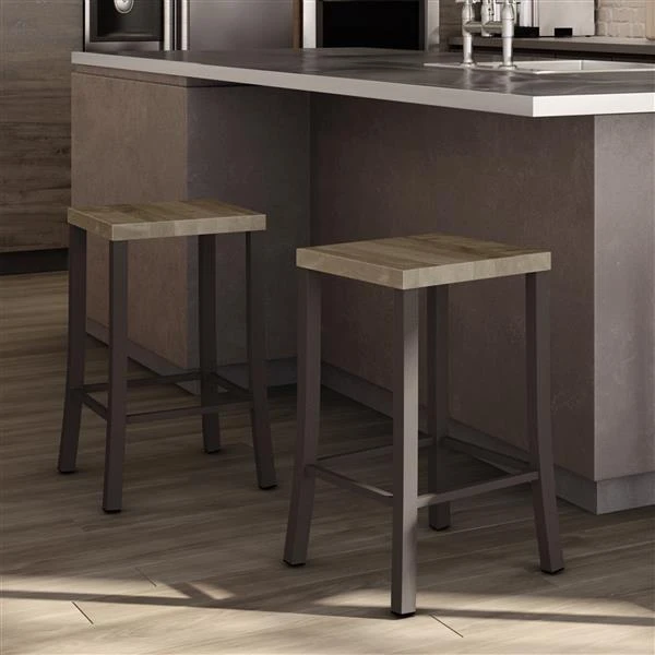 Amisco Ryan 30-in Bar Stool – Beige Distressed Wood – Dark Brown Metal