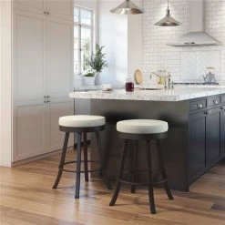 Amisco Logan 26.88-in Swivel Counter Stool – Light Beige PVC – Dark Brown Metal