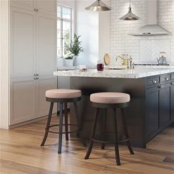 Amisco Logan 26.88-in Swivel Counter Stool – Soft Pink Fabric – Dark Brown Metal