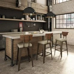 Amisco Rally 30.88-in Bar Stool – Brown Faux Leather – Brown Distressed Wood – Brown Metal