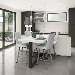 Amisco Eller 27-in Swivel Counter Stool – Off White Faux Leather – Silver Grey Metal