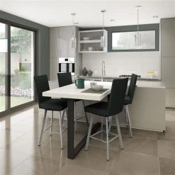 Amisco Eller 27-in Swivel Counter Stool – Off White Faux Leather – Black Metal