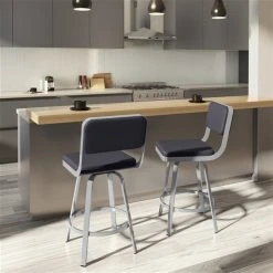 Amisco Everett 26.25-in Swivel Counter Stool – Navy Blue Faux Leather – Glossy Grey Metal